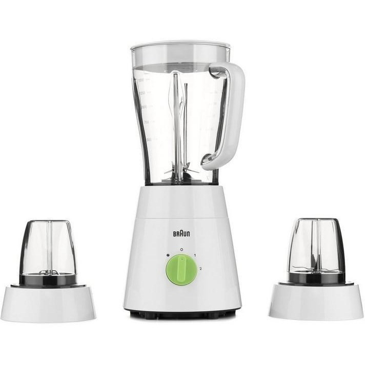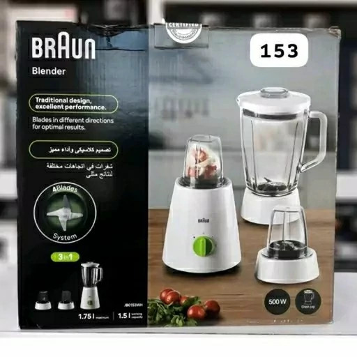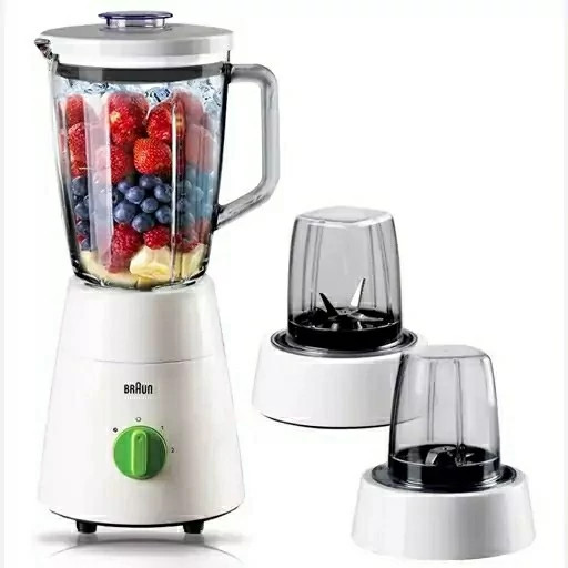 رنگ : سفید قابلیت شستشوی اجزا در ماشین ظرفشویی : دارد جنس پارچ : پلاستیک جنس تیغه مخلوط کن : استیل ضدزنگ جنس بدنه مخلوط کن : پلاستیک توان مصرفی مخلوط کن : 500 وات تنظیمات سرعت مخلوط کن : دارد سایر مشخصات مخلوط کن 1.5 L working capacity, 3 in 1, 4 blades system, plastic jar + 2 mill ظرفیت پارچ : 1.5 لیتر