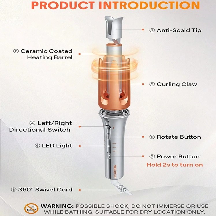 سیم دستگاه با قابلیت چرخش ۳۶۰ درجه برای استفاده آسان/امکان تنظیم زمان حرارتدهی برای جلوگیری از آسیب به مو